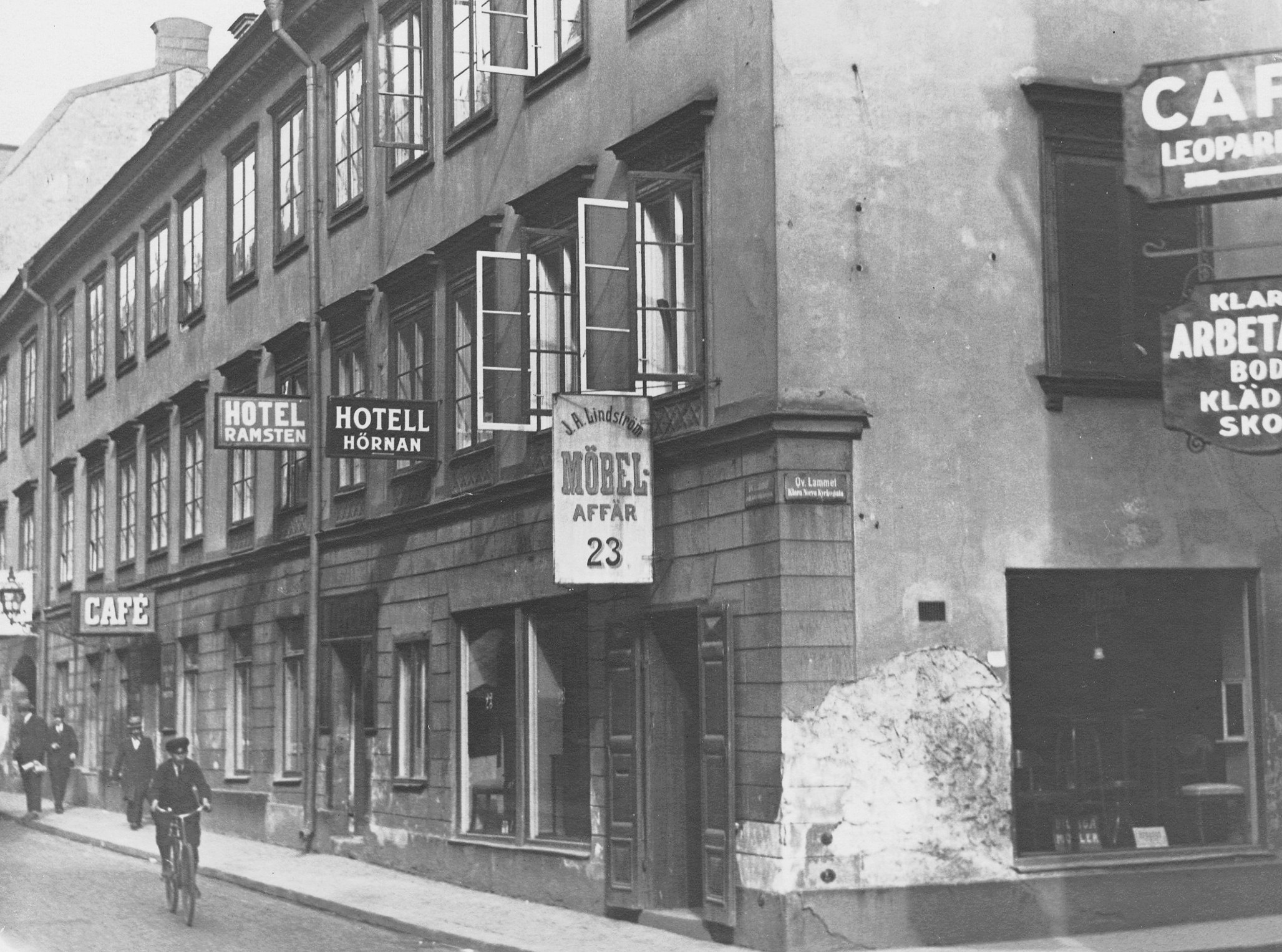 I oktober 1864 flyttade Gunnar Wennerberg hit. Han hade kallats till Stockholm för att som ledamot medverka i en kommitté för ordnande av Nationalmuseets samlingar. Han skrev ”våra rum är något små, men varma och jag hoppas de ska bli trevliga”. I samma byggnad låg på 1900-talets början två hotell: "Hotel Ramsten" och "Hotell Hörnan", det senare existerade fortfarande på 1950-talet.
